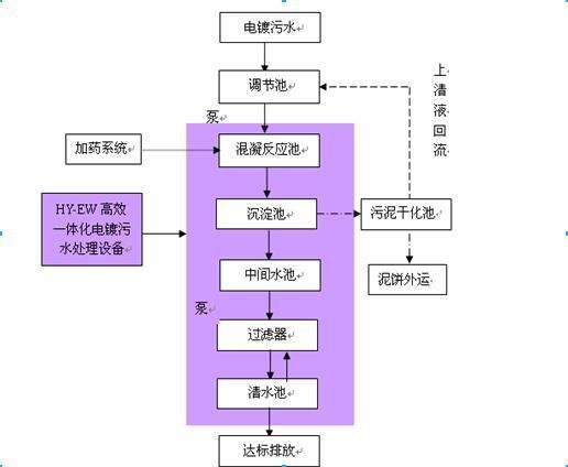 電鍍鋅污水處理的方式,由于人們的改革以及創(chuàng)新,已經(jīng)衍生出多種多樣的處理形式,例如:樹(shù)脂交換反應(yīng)處理法、電流分解處理法、化學(xué)法氣浮等等,都可以有效地將電鍍鋅污水進(jìn)行即時(shí)處理。在上世紀(jì)九十年代,人們經(jīng)過(guò)實(shí)驗(yàn)得知,通過(guò)樹(shù)脂交換反應(yīng)處理過(guò)的電鍍污水,不但可以將污染源頭進(jìn)行遏制,反而,還會(huì)將其中的珍貴稀有金屬物質(zhì)進(jìn)行再度回收利用;電鍍鋅污水處理工藝如圖所示: